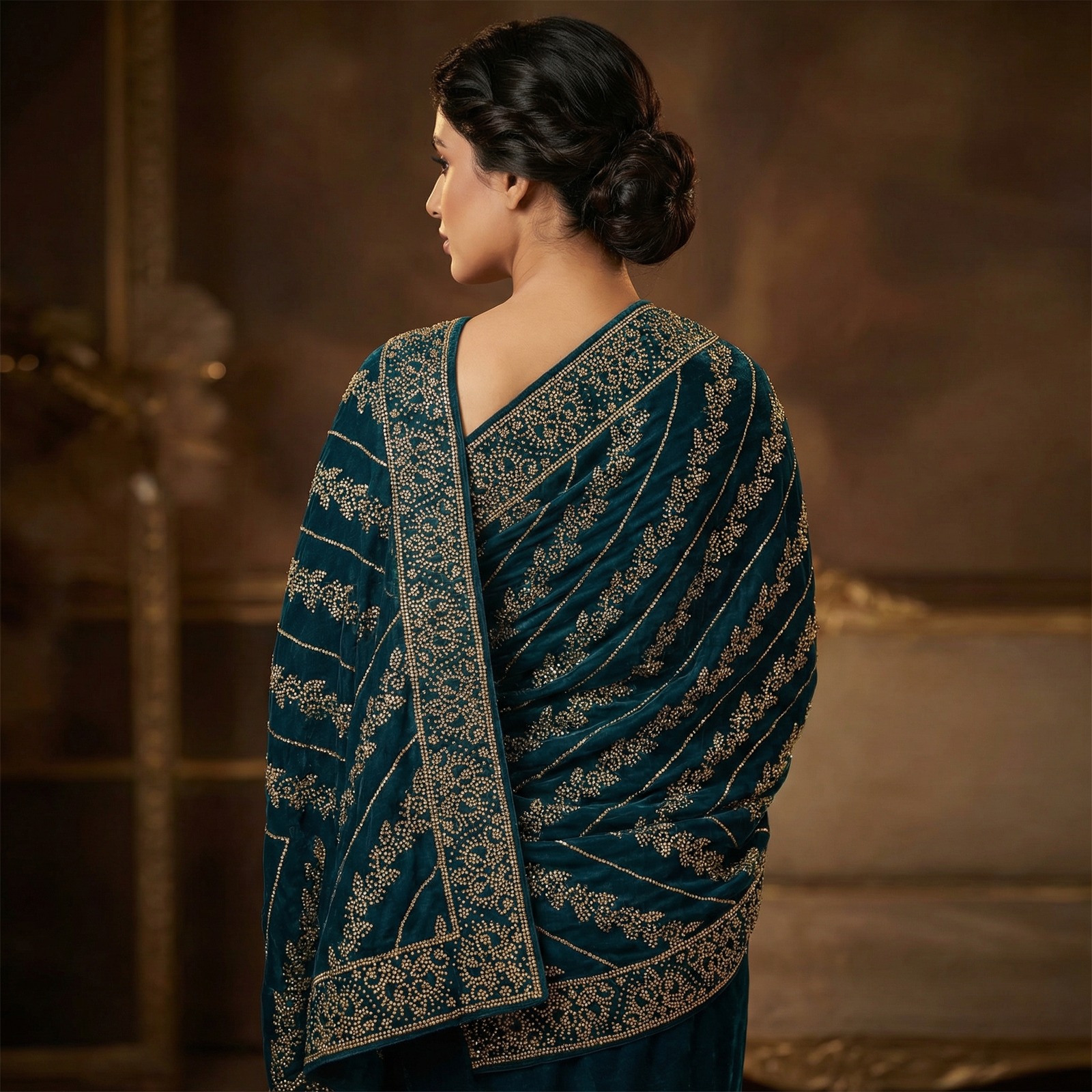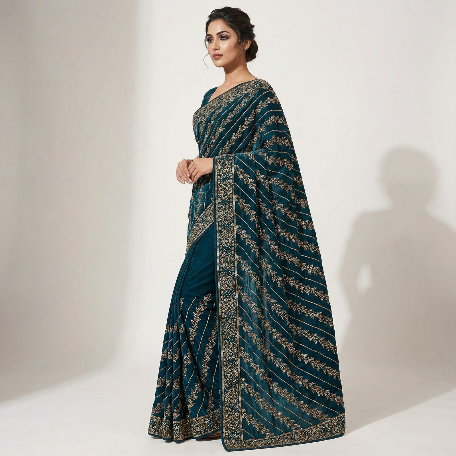 Perfectly blending tradition with modern sophistication, this saree is a must-have for anyone looking to make a stylish, unforgettable statement.